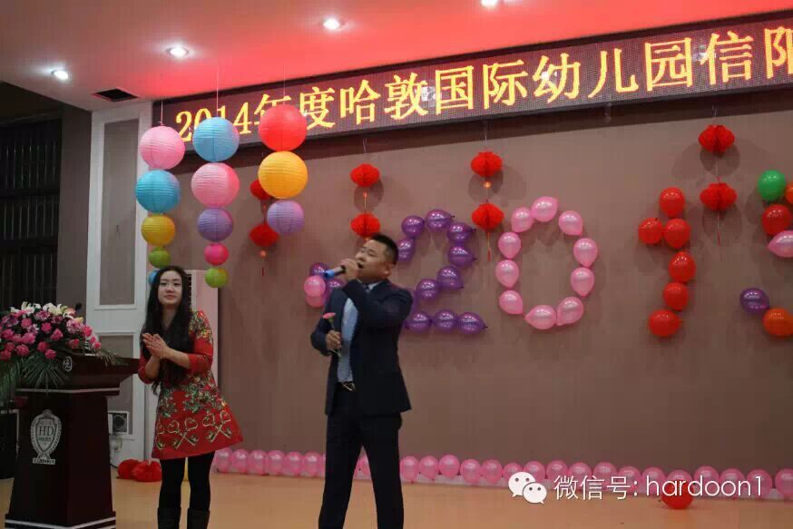 晚会结束,员工们意犹未尽,在享受丰盛大餐的同时一个个上台歌颂祖国,歌唱哈敦。我们深信哈敦国际幼儿园信阳分园在新的一年一定能再创辉煌。